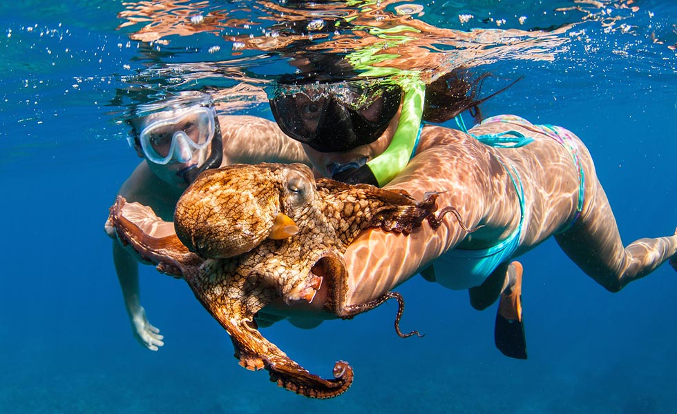 Снорклинг (плавание под водой с маской, трубкой и ластами).