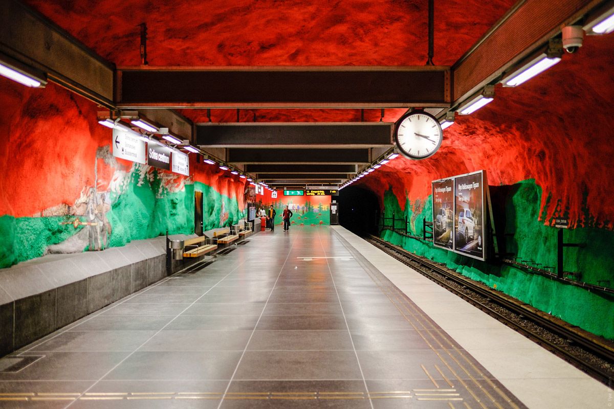 Стокгольмское метро часто называют самой длинной художественной галереей. И это правда, однако так можно отозваться только о синей ветке. Практически каждая станция этой линии украшена рисунками, барельефами, мозаиками, скульптурами и инсталляциями. Иногда там даже проводятся различные выставки. Для этого более сотни художников готовы предоставить свои шедевры.