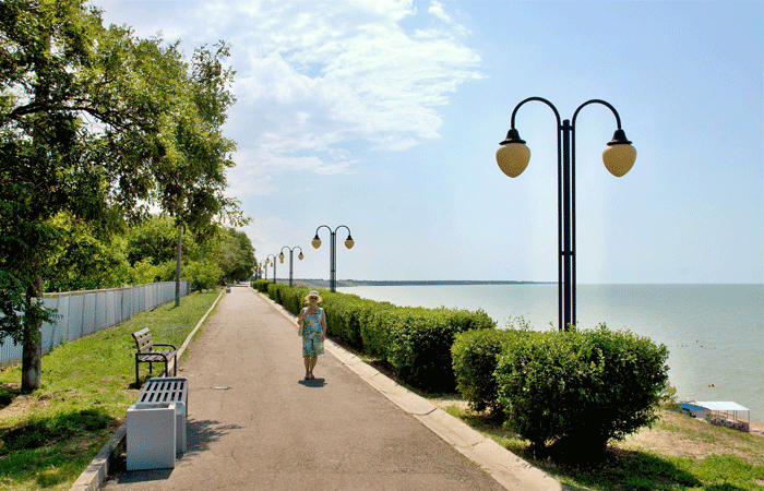 Он отличается развитой инфраструктурой, отличными пляжами, наличием дельфинария, аттракционов, детских кафе. Также туристов порадуют цены на отдых в Ейске, поскольку они ниже, чем на Черном море.
