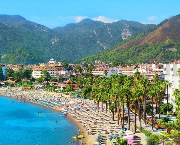 Мармарис славится своими галечными пляжами и активной ночной жизнью на улице баров, где расположено много клубов, концертных площадок и прочих развлекательных заведений. Этот населенный пункт находится в долине, между горами, заросшими сосновыми деревьями, красивыми прозрачными водами, которые так и манят в них искупаться.