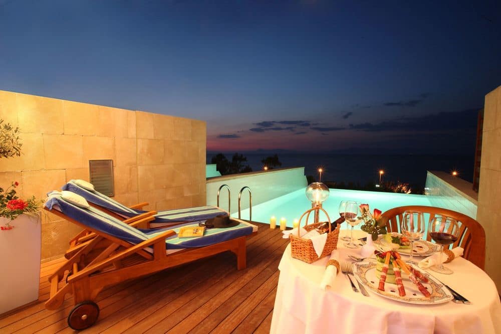 Роскошные сьюты с частными бассейнами отеля Amathus Elite Suites, расположены рядом с главным зданием отеля и отличаются пакетом - "Привилегия". Гостей ждет: эксклюзивный сервис, приватные завтраки, отдельная пляжная зона с комфортабельными лежаками и свежими фруктами. Отдых продуман до мелочей: роскошные халаты, косметика от BVLGARI, зона Executive Lounge.