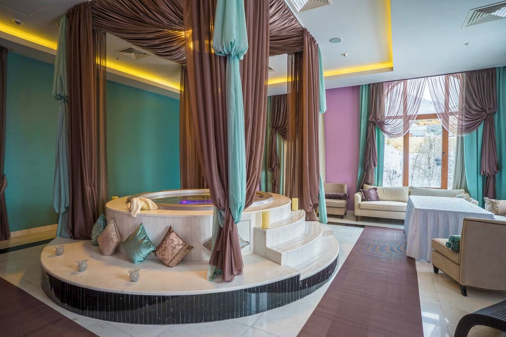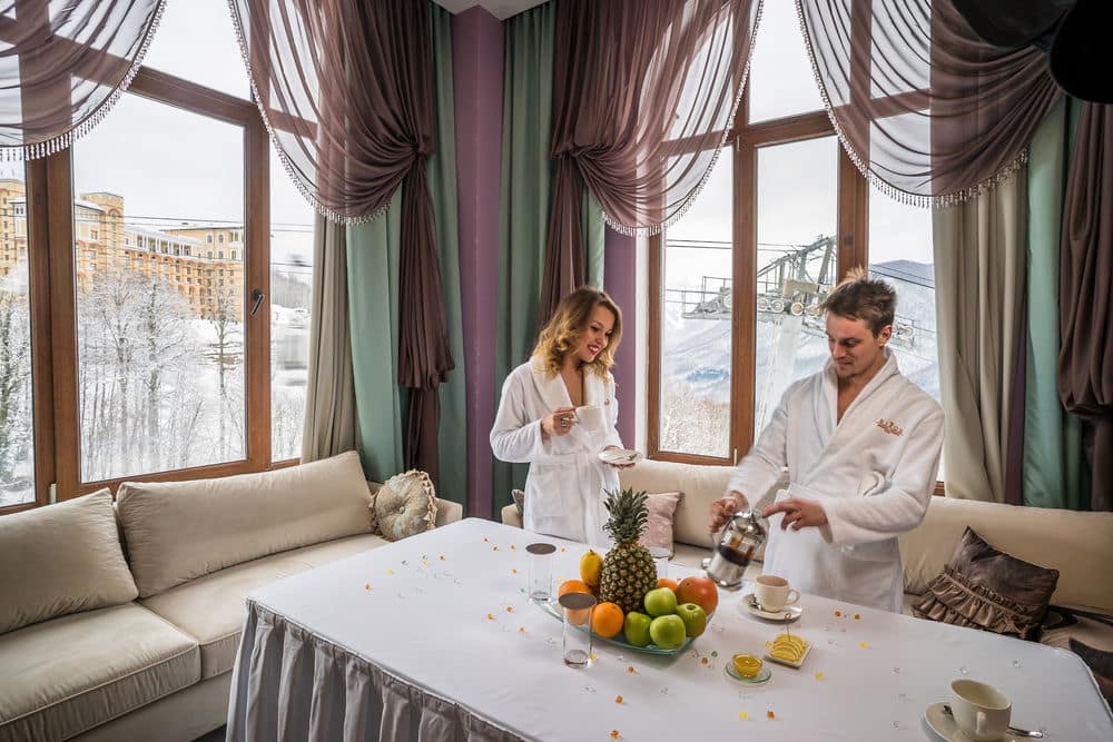 Самый удачный совместный проект архитекторов и природы. Из комфортабельных номеров гости могут бесконечно наслаждаться красотой Кавказских гор. Удачное расположение к подъёмникам, первоклассный сервис и отличное питание. Гордость отеля - это спа-центр с самым современным оборудованием и королевским басейнном, панорамными видами и настоящим турецким хаммамом.