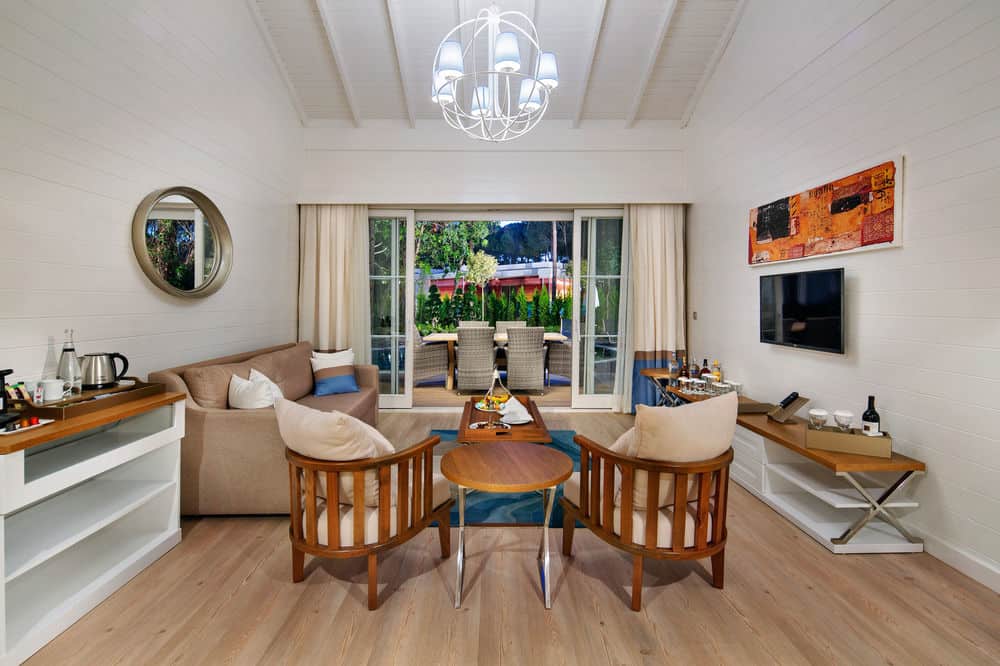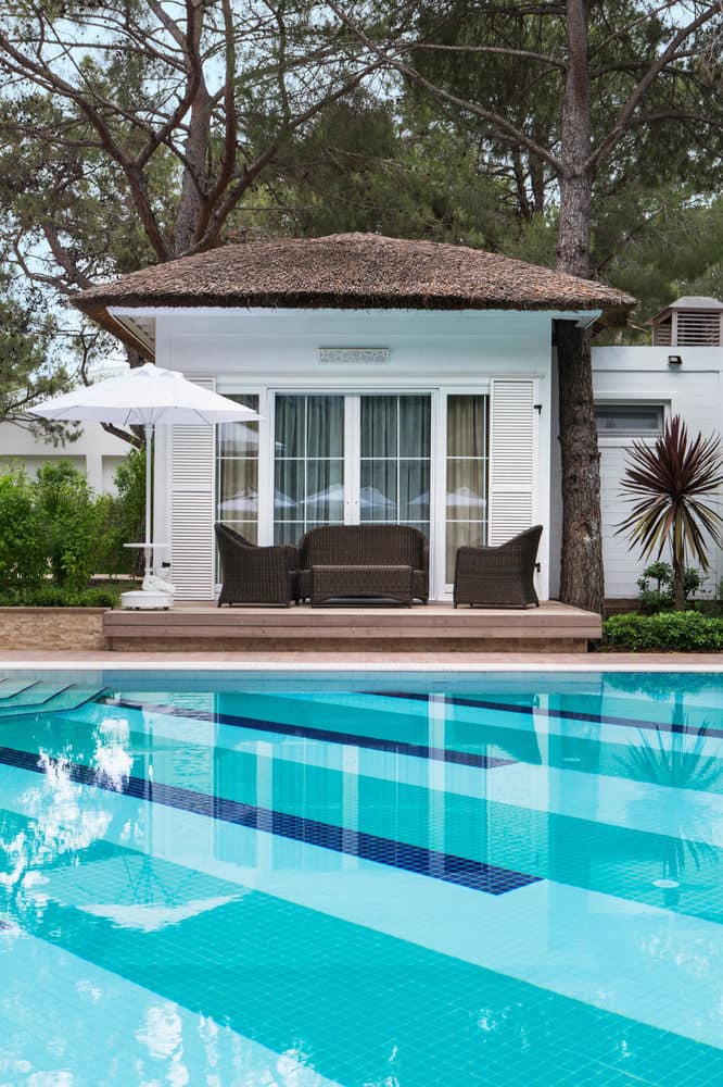 Огромная зеленая территория отеля состоит из основного здания и вилл. Вся территория утопает в цветах и повсюду слышны голоса птиц. Эксклюзивные виллы, расположенные на первой береговой линии, отвечают высоким стандартам класса VIP. Отель рекомендован для семейного отдыха с детьми.