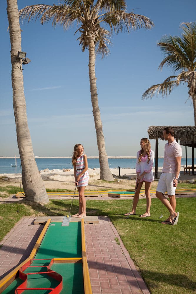 Респектабельный и спокойный гольф-отель. Огромная зеленая территория, пляж протяженностью 800 метров, более 12 ресторанов и баров. Дети до 12 лет с двумя взрослыми отдыхают бесплатно. Для детей есть специализированный детский клуб, а для малышей ясли-клуб. Отель предлагает гостям бесплатные трансферы во все торговые центры Дубая.