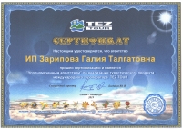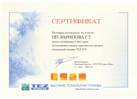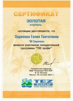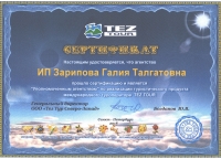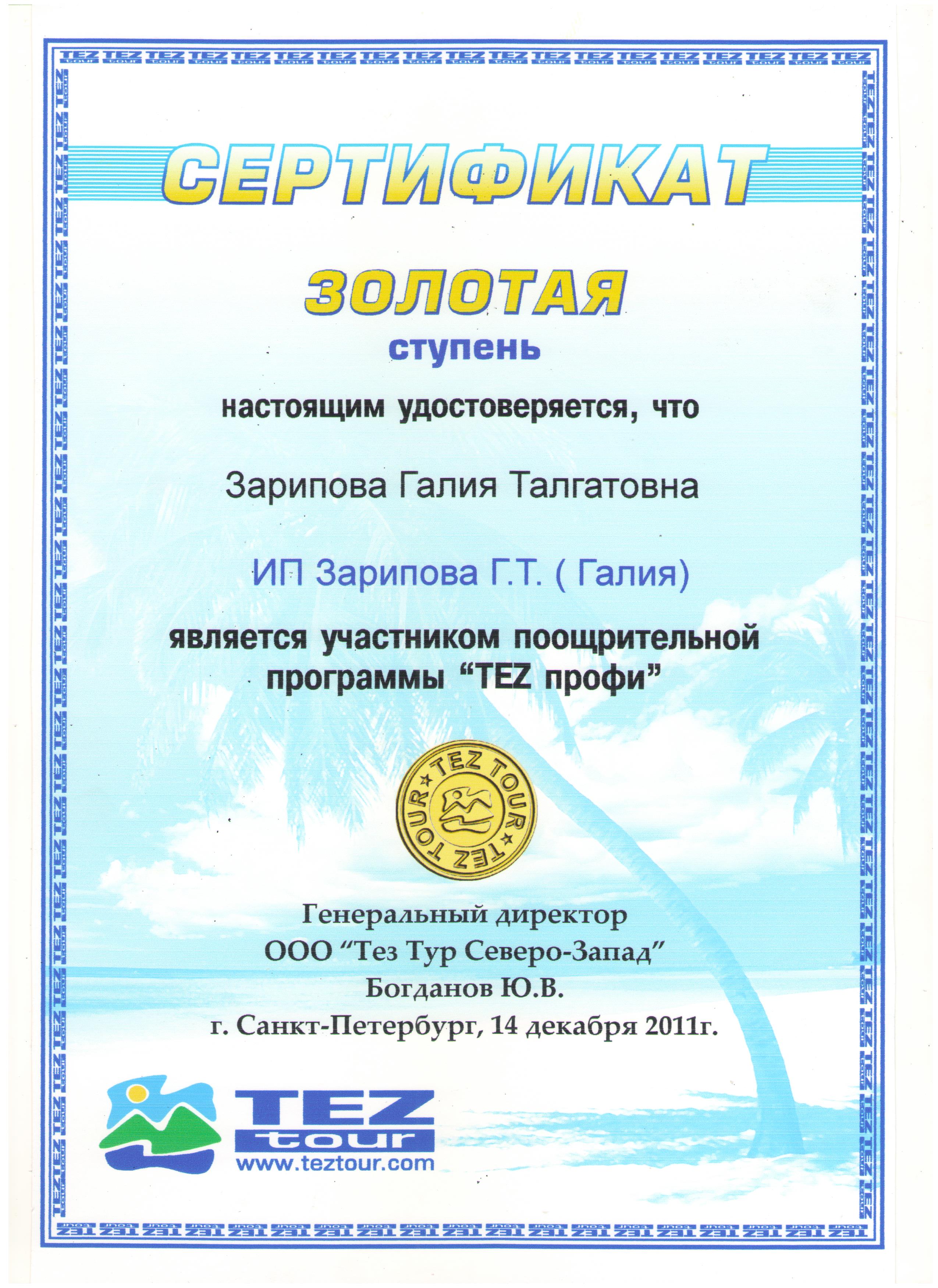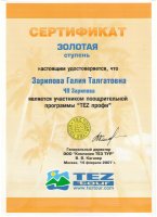 TEZ TOUR - Сертификат Зариповой Галие Талгатовне - является участником поощрительной программы "TEZ профи" (2011 год).
