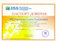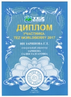 TEZ TOUR - Диплом участника TEZ WORLDBERRY в Москве ИП ЗАРИПОВА Г.Т. (2017 год).