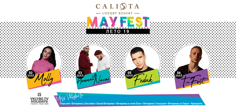 Наполните свою жизнь яркими событиями, приезжайте на Май Фест 2019 в отель Calista Luxury Resort 5*!