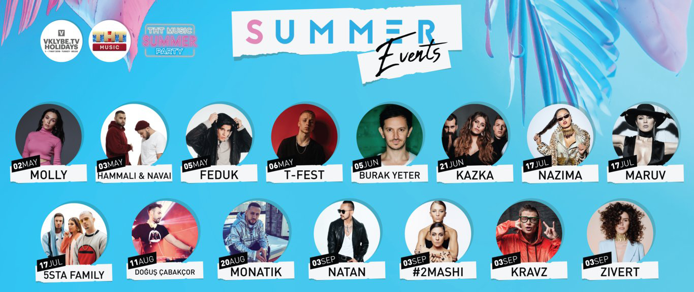 Для Вас выступят: Molly, HammAli & Navai, Feduk, T-Fest, Burak Yeter, Kazka, Nazima, Maruv, 5sta Family, Dogus Cabakcor, Monatik, Natan, #2Маши, Kravz, Zivert.