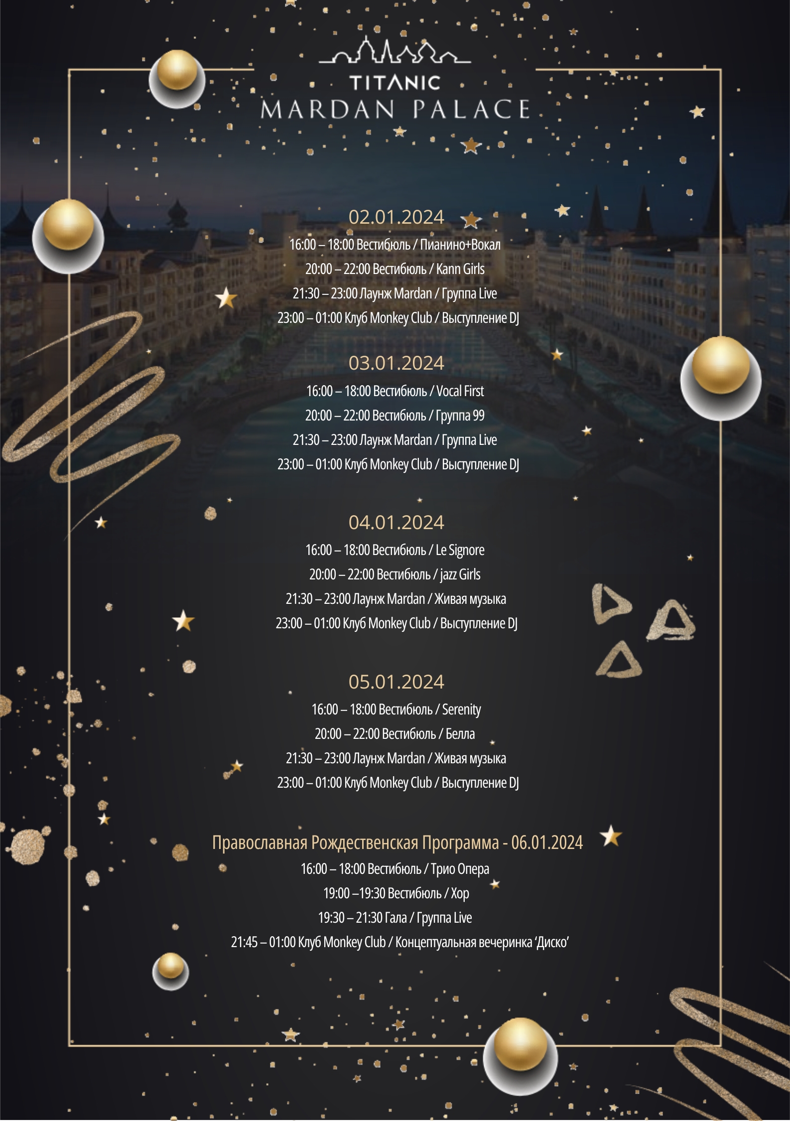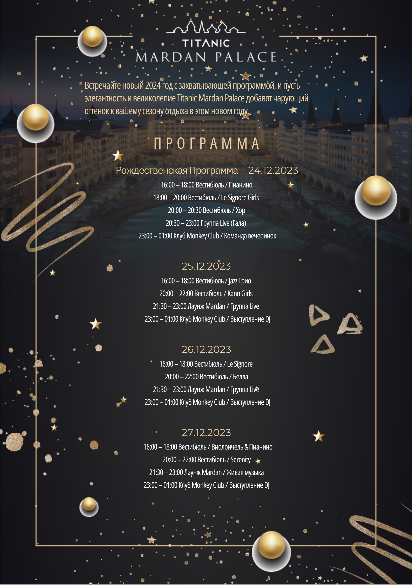 New Year 2024 в Titanic Mardan Palace 5 - Вас ждут особенные и увлекательные новогодние праздники!