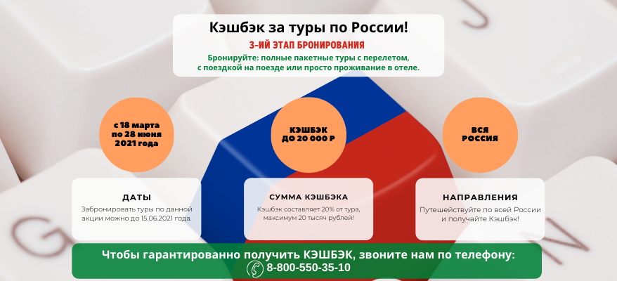 Кэшбэк за туры по России 2021 - 3-ий этап!
