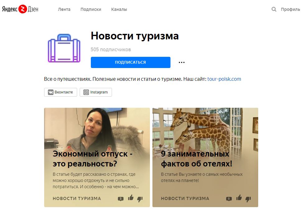С лета (а если быть более точным, то с 1 июня 2018 года), наша команда tour-poisk.com ведёт свой канал в Яндекс Дзен.